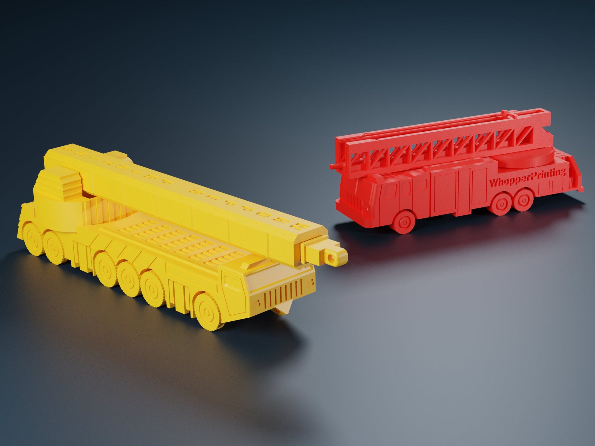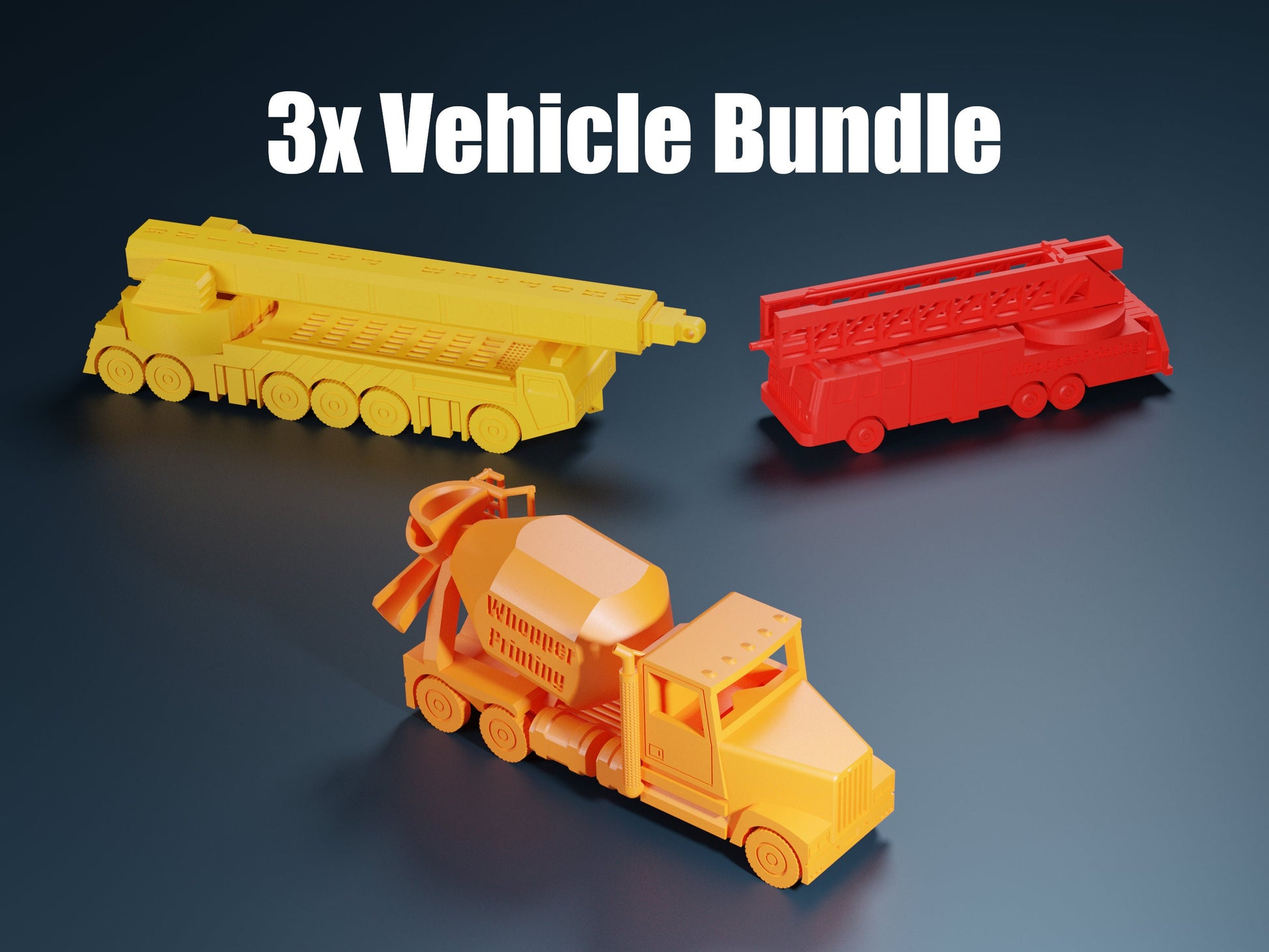 This bundle includes the print-in-place firetruck, mobile crane truck, and the concrete mixer truck! Check the shop for the individual listings and details.