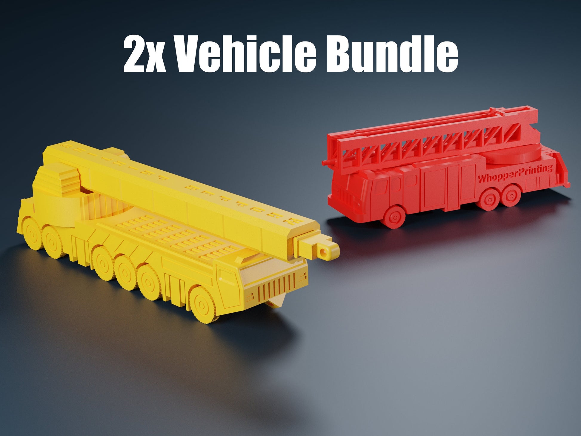 This bundle includes the print-in-place firetruck and the mobile crane truck! Check the shop for the individual listings.