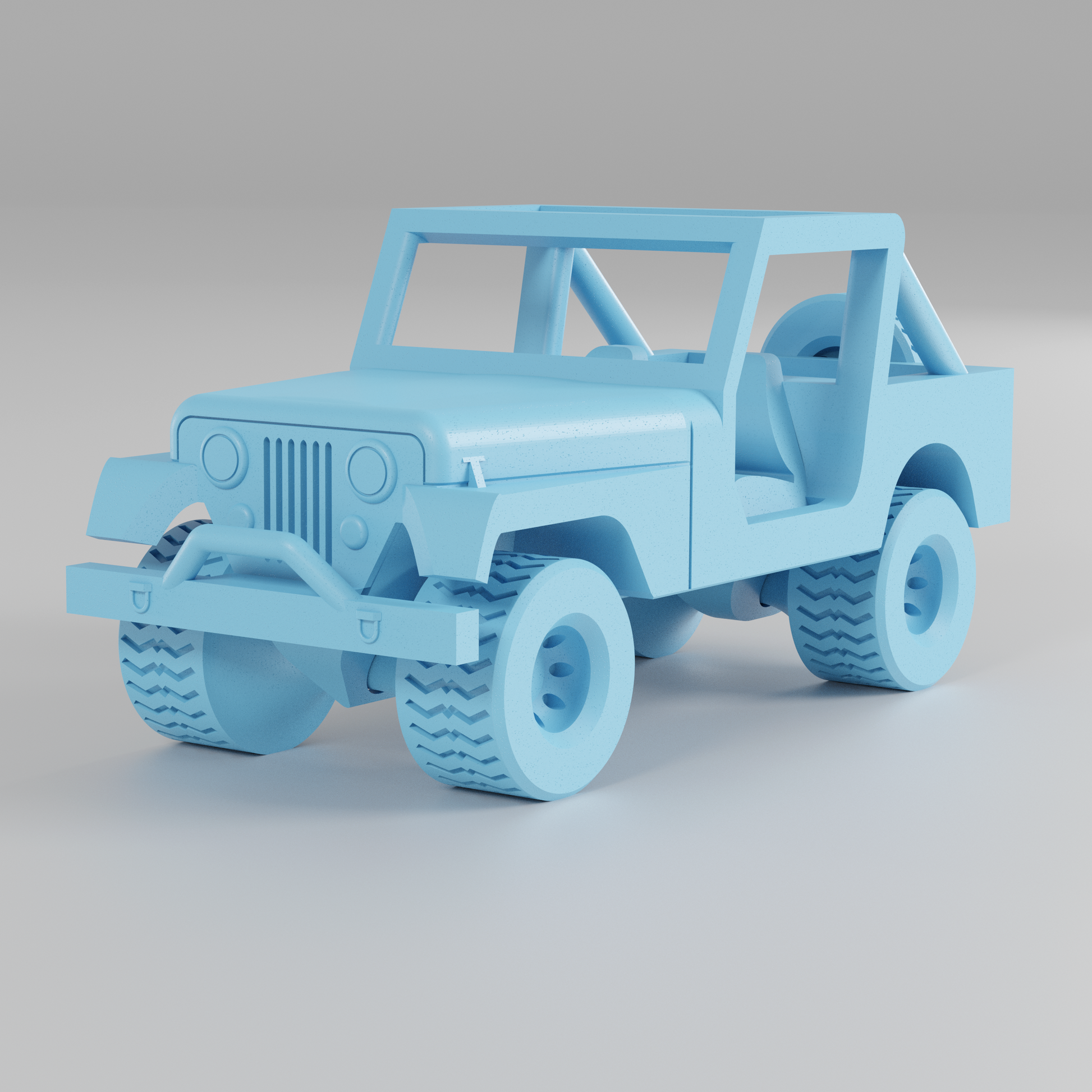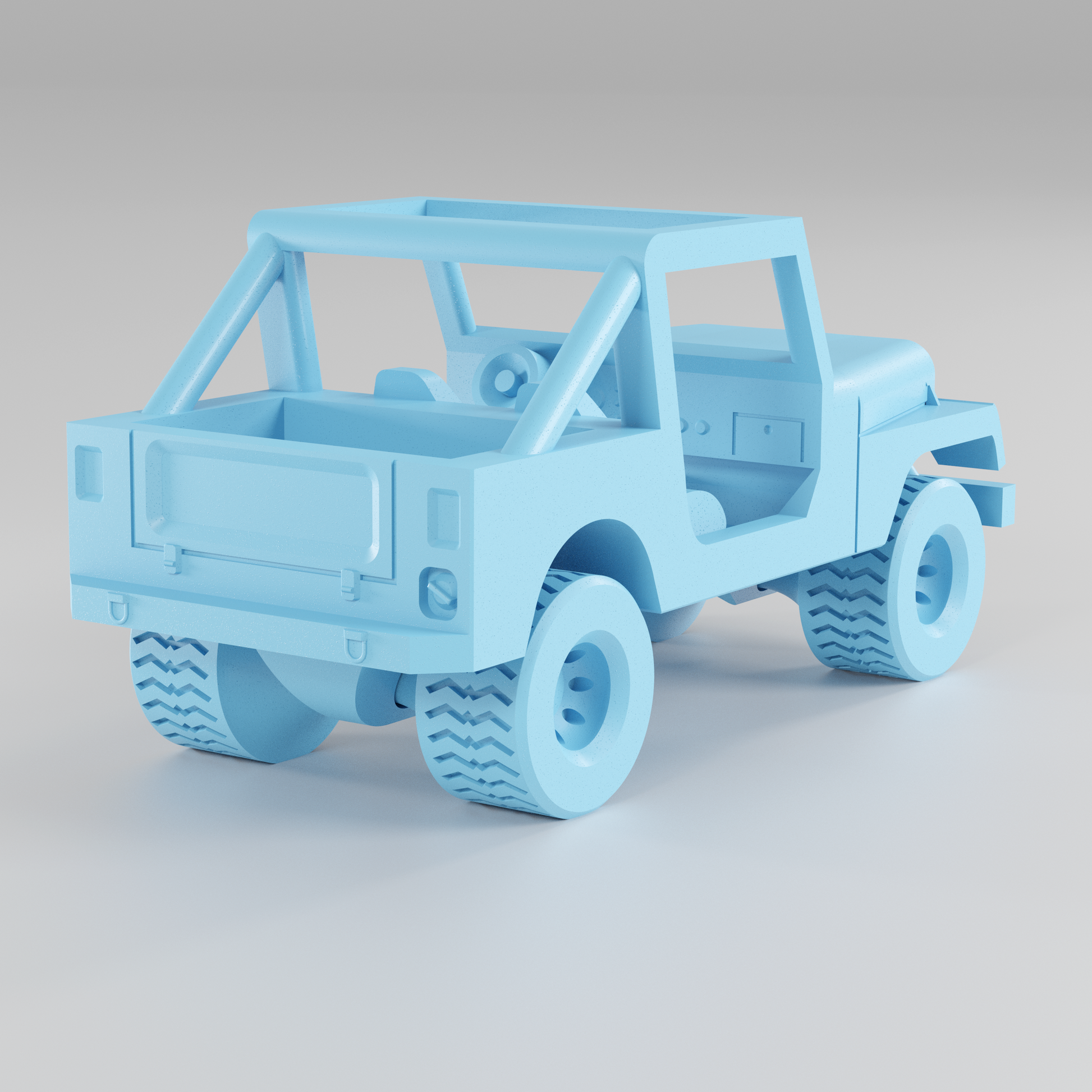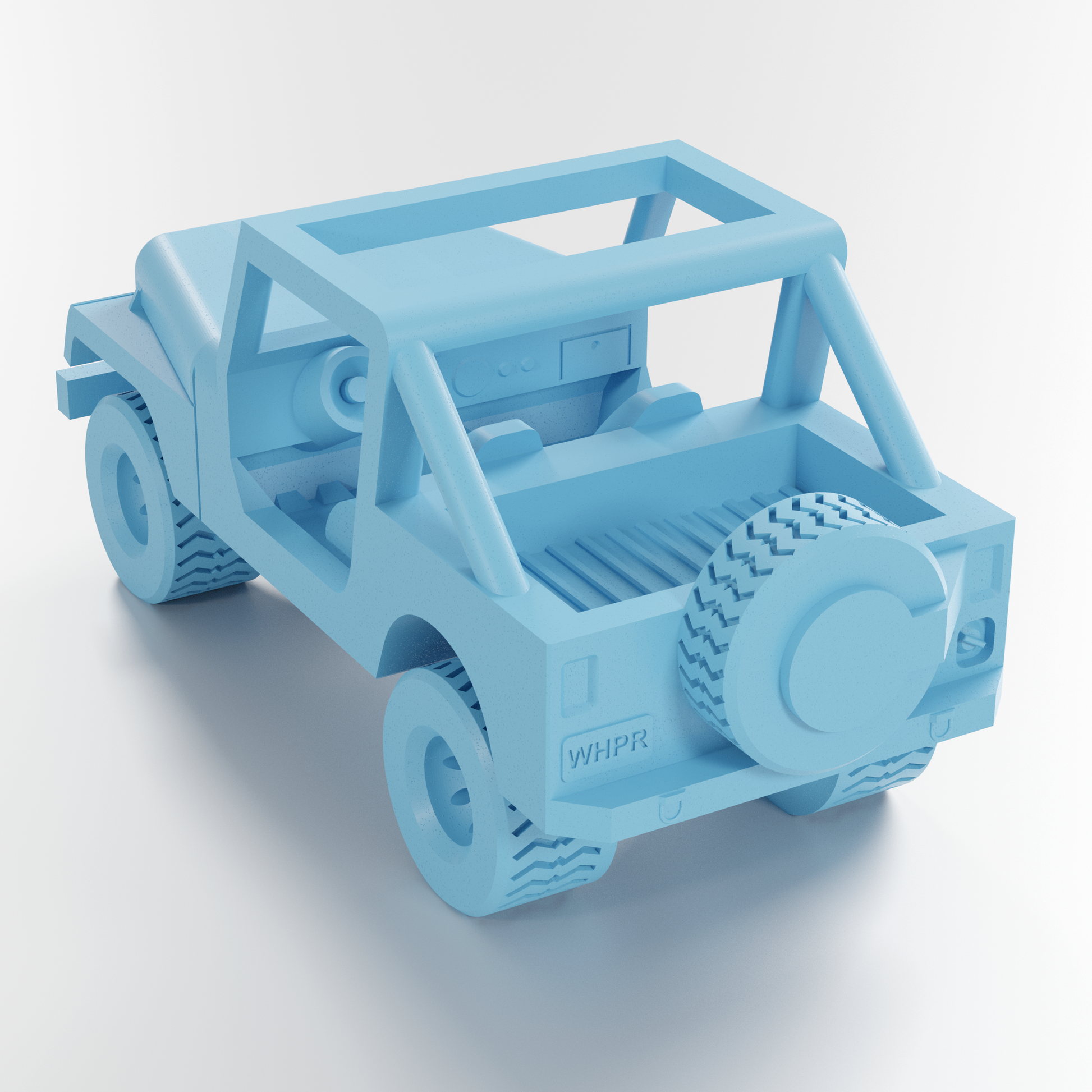 This CJ7 style Jeep prints completely without assembly or support! The wheels spin freely! There are fun details in the cab, such as foot pedals, a steering wheel, a glove box, and small miscellaneous dash details.