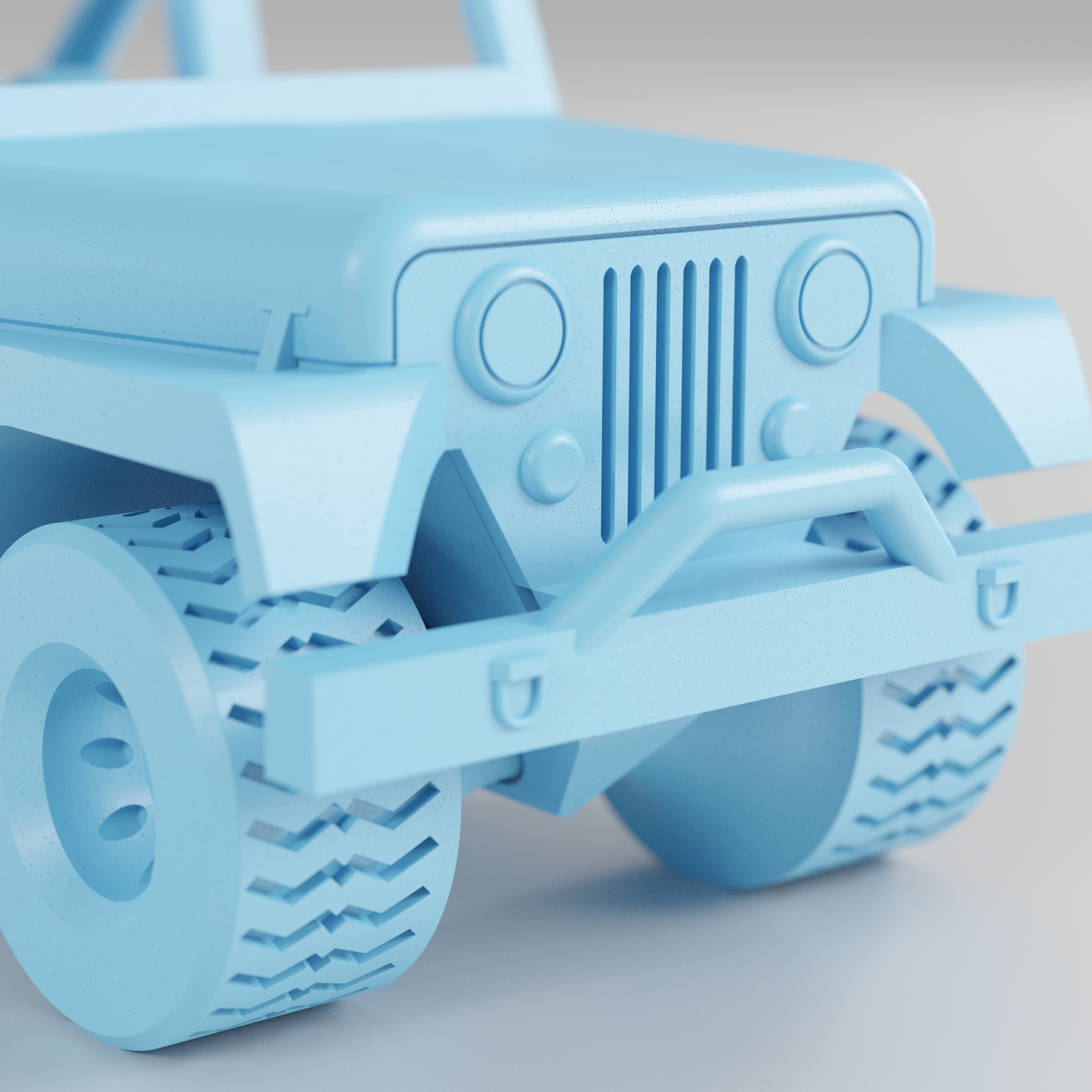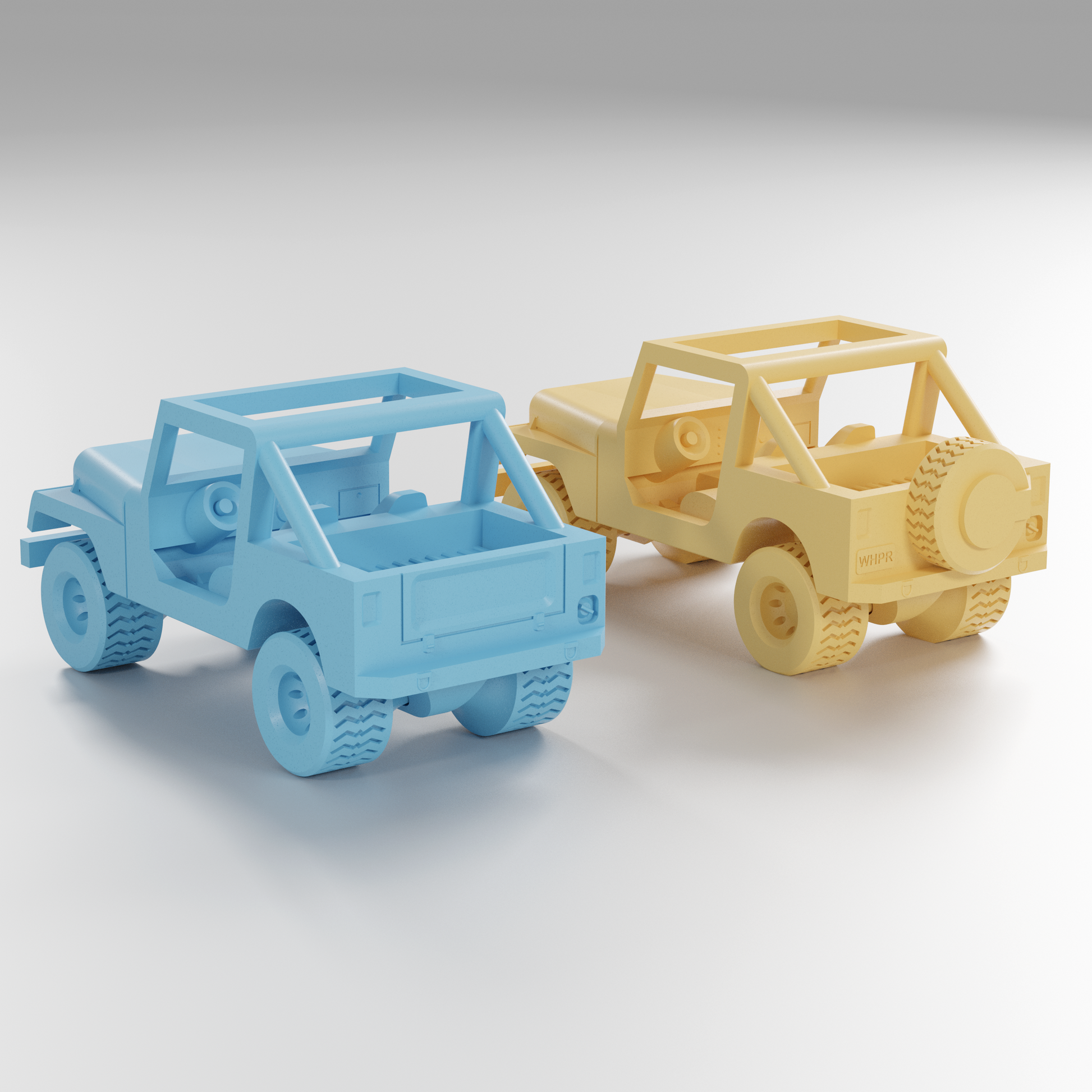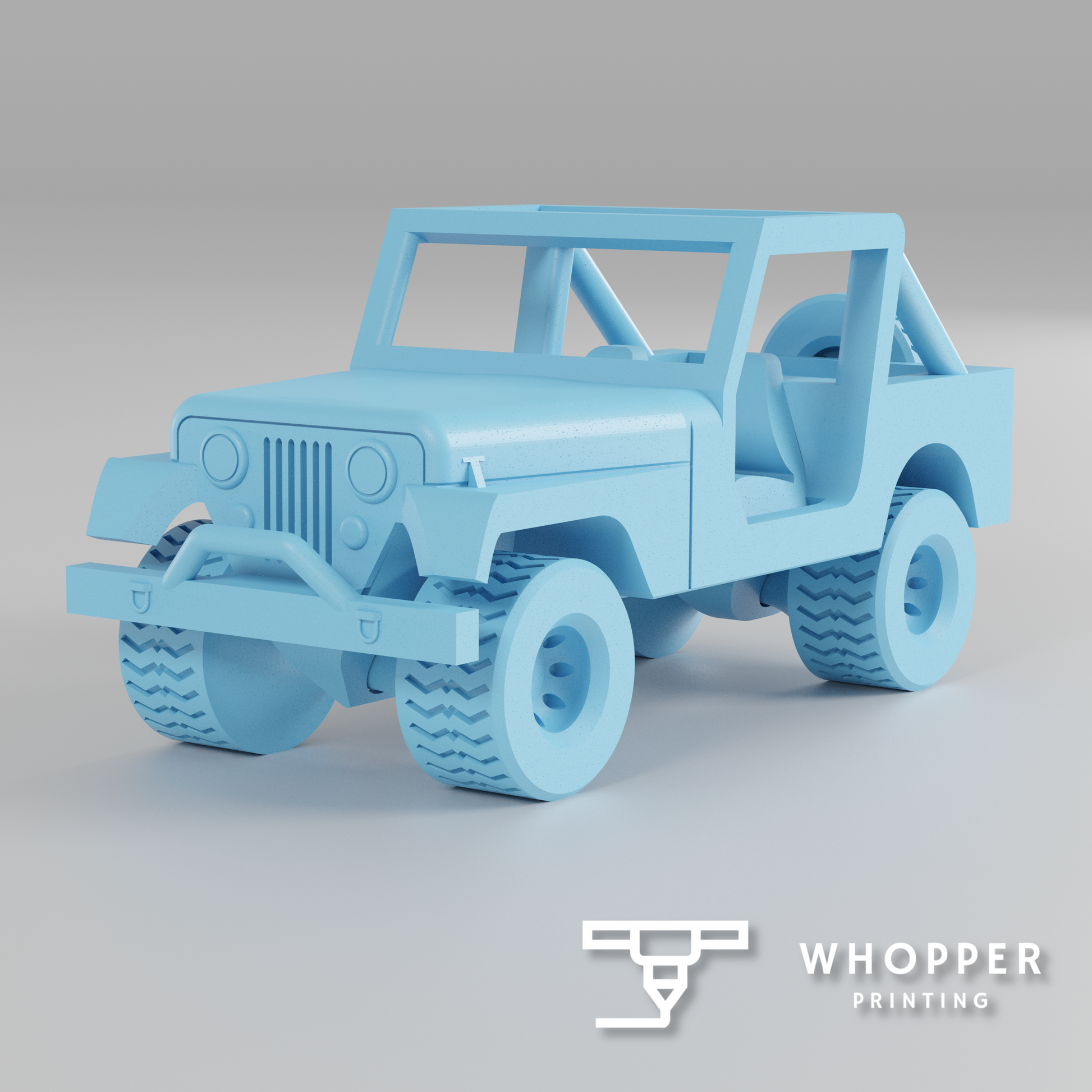 This CJ7 style Jeep prints completely without assembly or support! The wheels spin freely! There are fun details in the cab, such as foot pedals, a steering wheel, a glove box, and small miscellaneous dash details.