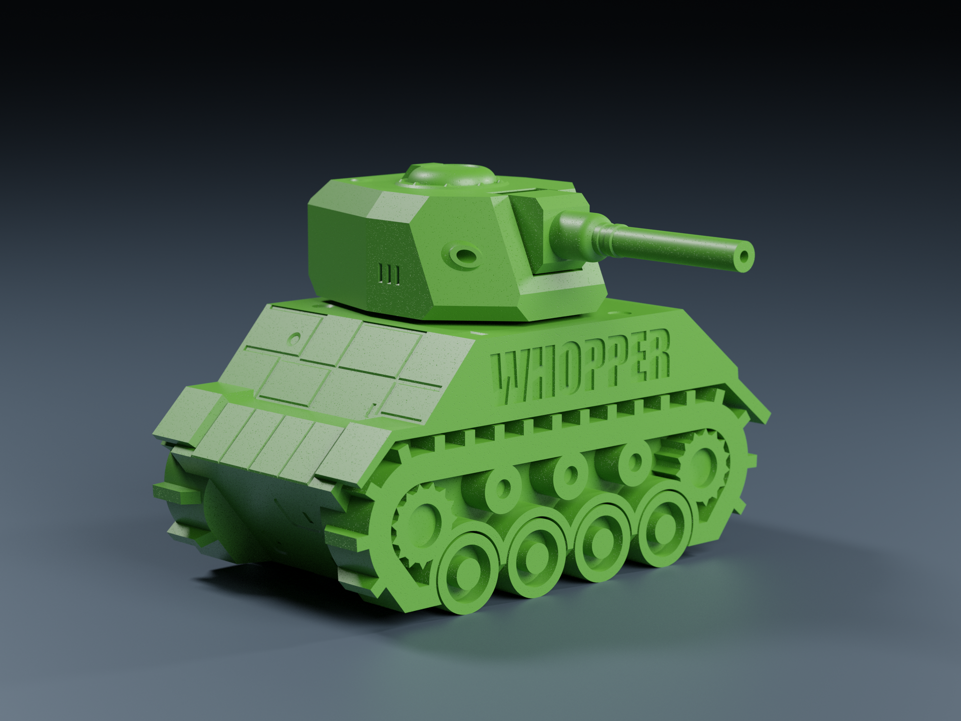 This model features 4 movable wheel axles, a 360 degree rotating turret and an articulated barrel!